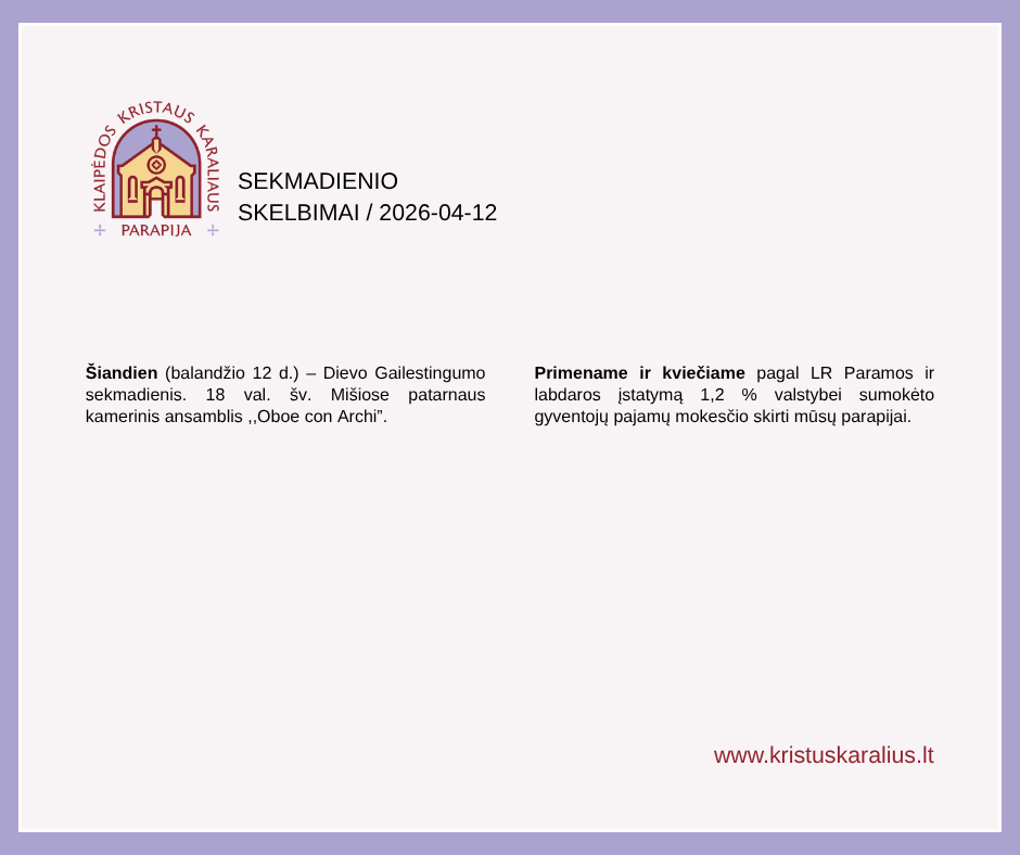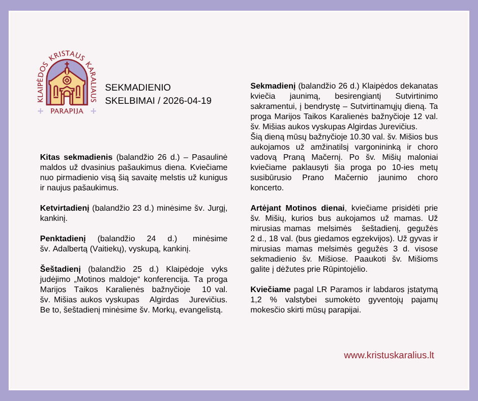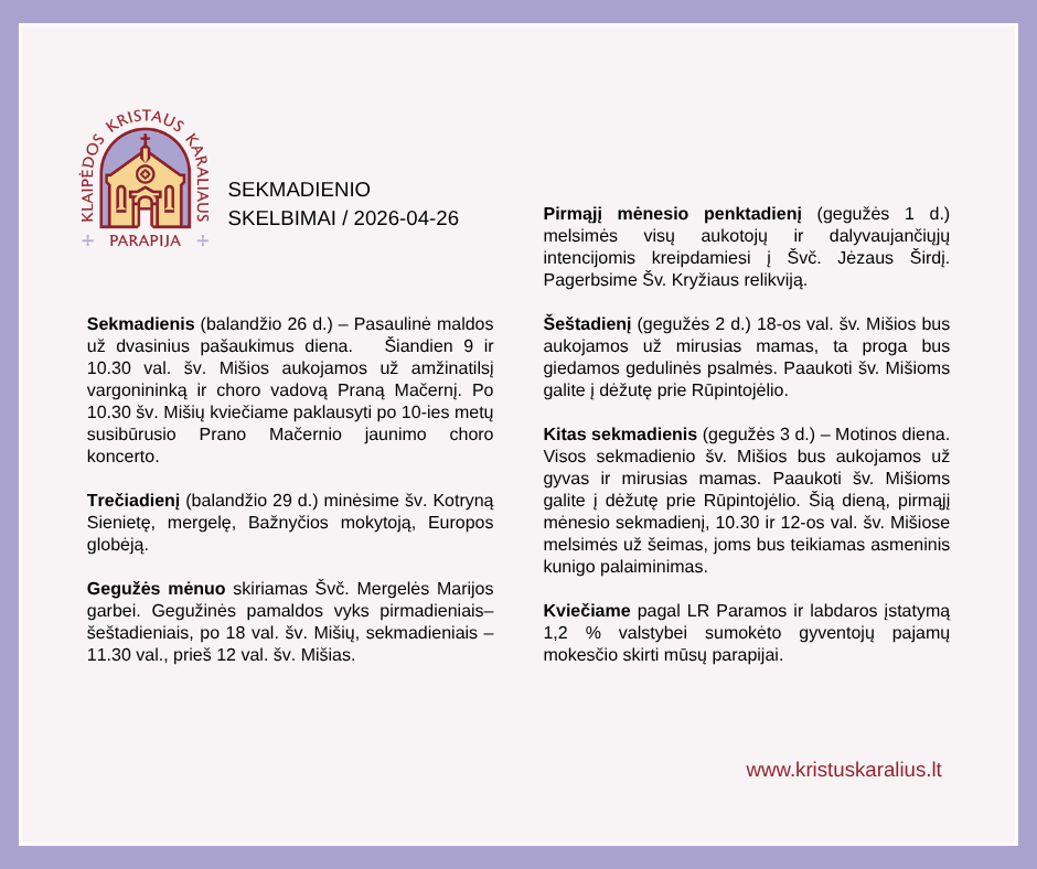 El. p. klaipedoskristauskaraliausp@gmail.com