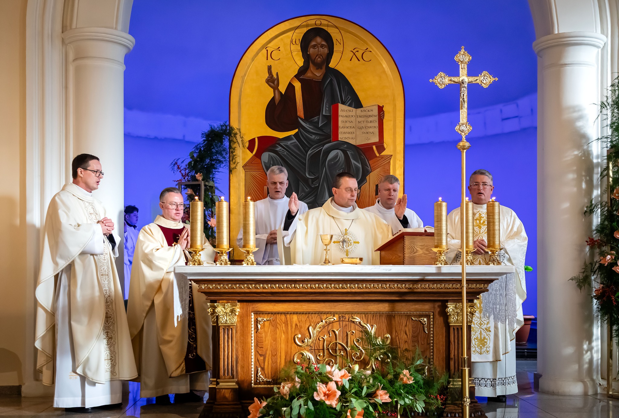 KNYGA – atverta, Kristus ją laiko kairėje rankoje, rodo žodžius, kuriuos mums nori pasakyti: „Aš – pasaulio šviesa. Kas seka manimi, nebevaikščios tamsybėse, bet turės gyvenimo šviesą“ (Jn 8, 12).